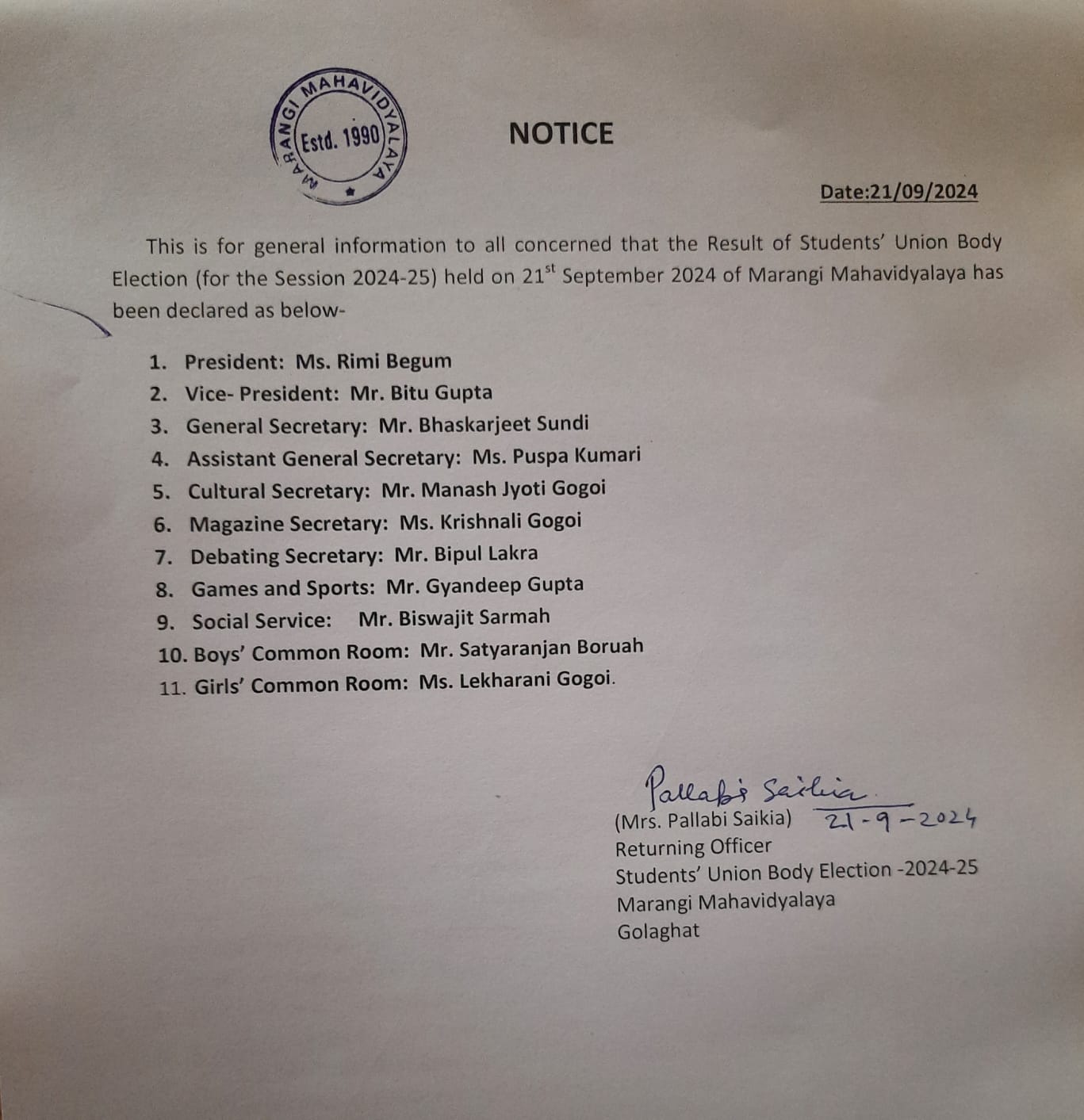 Celebration of World’s Aids Day on 1st December 2024December 1, 2024AIDS AWARENESS CAMPDecember 8, 2024 Published by admin on December 8, 2024 Categories Notifications Tags Share0 admin Related postsJanuary 16, 2025Even semester classes 2025Read moreSeptember 25, 2024Election resultsRead moreSeptember 5, 2024Programme 1st Sessional Examination, 2024-25Read more Leave a Reply Cancel replyYour email address will not be published. Required fields are marked *Comment * Name * Email * Website Save my name, email, and website in this browser for the next time I comment.