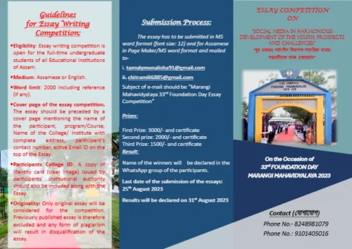 Anti-ragging day 2023August 18, 2023Freshman Social on 19th August 2023.August 19, 2023 Published by admin on August 18, 2023 Categories Events Tags Share0 admin Related postsMarch 8, 2025Women day celebration at Marangi Mahavidyalaya by women cell of the college , in association with NGO -‘Amar xopun. On 8.3.25Read moreMarch 7, 2025Add on course on ‘Reading Ethnography ‘ has started by department of Sociology on 7.3.25Read moreMarch 7, 2025Today on 7.3.25. , department of Political science has started their add on course on Rural Economy.Read more Leave a Reply Cancel replyYour email address will not be published. Required fields are marked *Comment * Name * Email * Website Save my name, email, and website in this browser for the next time I comment.